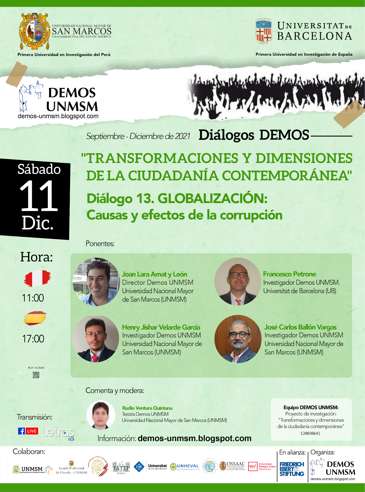 - Hashtag en facebook: #DemosUNMSM #DialogosDemosUNMSM
